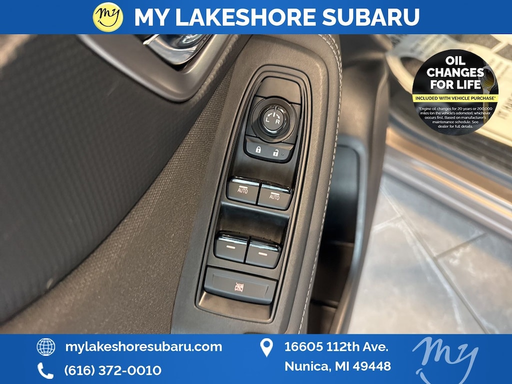 My Lakeshore Subaru is your #1 choice in Michigan to get the BEST PRICE on used vehicles and BEST value for your trade. The My Lakeshore Subaru team is ready to provide you with a world-class experience, ensuring that you find the perfect vehicle that fits all your needs. Every vehicle has been through a full safety inspection completed by certified technicians and fully detailed. We sell many makes and models, Certified Pre-owned Subaruâs and Pre-owned Vehicles with years from 2025-2024-2023-2022-2021-2020-2019-2018-2017-2016-2015-2014-2013-2012-2011-2010-2009-2008-2007 and all makes Audi, BMW, Chevrolet, Toyota, Volkswagen, Kia, Hyundai, Mazda, Mercedes, Dodge, Chrysler, Jeep, Ram, Lincoln, Honda, Subaru, and many models like Crosstrek, Outback, Forester, Accent, Legacy, WRX, BRZ, Solterra, and more. Take advantage of our VIP experience by calling 231-867-6957 to schedule a test drive. Read our customer reviews and view our entire selection of preowned vehicles at www.mylakeshoresubaru.com, or stop by today, located at 16605 112th Ave, Nunica, MI 49448. 26/33 City/Highway MPG