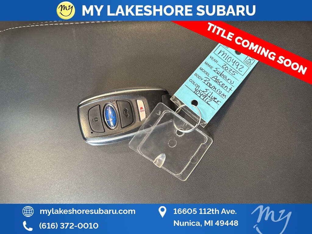 My Lakeshore Subaru is your #1 choice in Michigan to get the BEST PRICE on used vehicles and BEST value for your trade. The My Lakeshore Subaru team is ready to provide you with a world-class experience, ensuring that you find the perfect vehicle that fits all your needs. Every vehicle has been through a full safety inspection completed by certified technicians and fully detailed. We sell many makes and models, Certified Pre-owned Subaruâs and Pre-owned Vehicles with years from 2025-2024-2023-2022-2021-2020-2019-2018-2017-2016-2015-2014-2013-2012-2011-2010-2009-2008-2007 and all makes Audi, BMW, Chevrolet, Toyota, Volkswagen, Kia, Hyundai, Mazda, Mercedes, Dodge, Chrysler, Jeep, Ram, Lincoln, Honda, Subaru, and many models like Crosstrek, Outback, Forester, Accent, Legacy, WRX, BRZ, Solterra, and more. Take advantage of our VIP experience by calling 231-867-6957 to schedule a test drive. Read our customer reviews and view our entire selection of preowned vehicles at www.mylakeshoresubaru.com, or stop by today, located at 16605 112th Ave, Nunica, MI 49448. 20/26 City/Highway MPG
