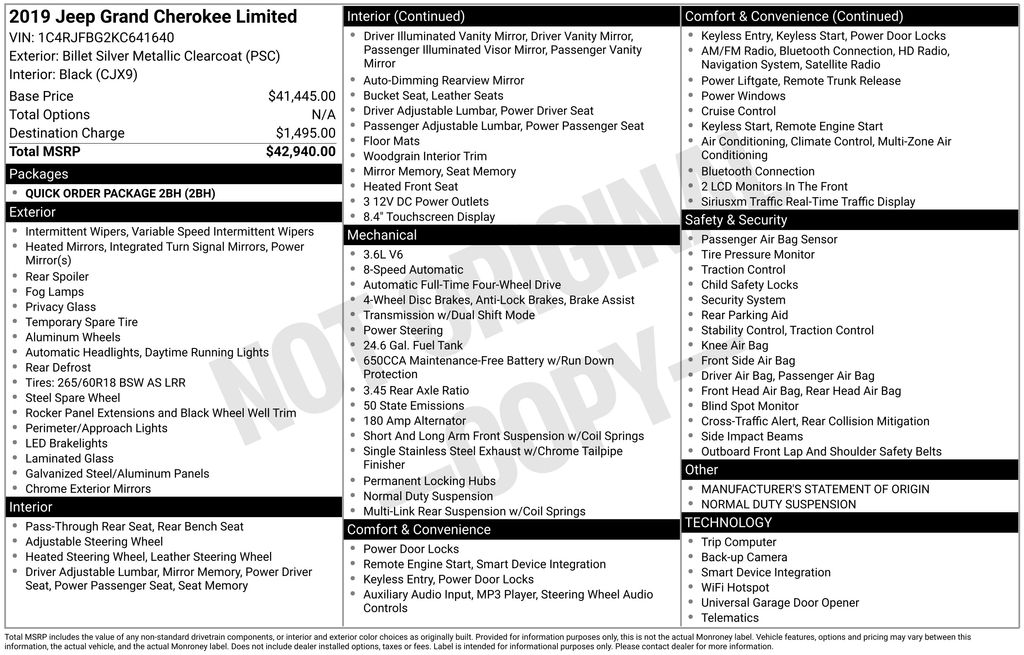 Recent Arrival! Billet Silver Metallic Clearcoat 2019 Jeep Grand Cherokee Limited 3.6L V6 24V VVT 4WD Odometer is 5877 miles below market average!