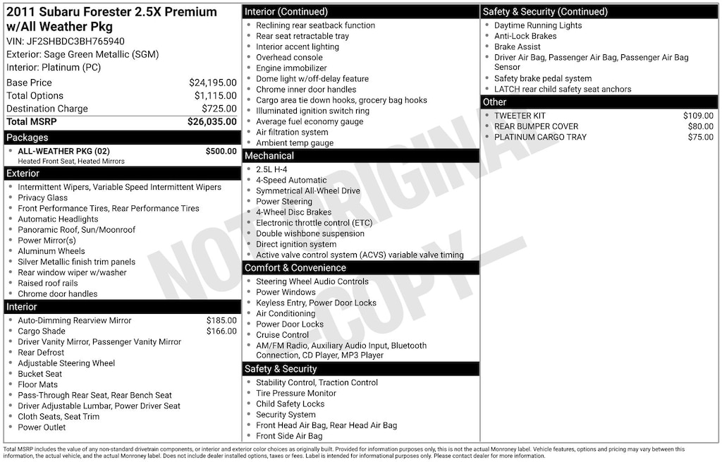 2011 Subaru Forester-Lemon!!!