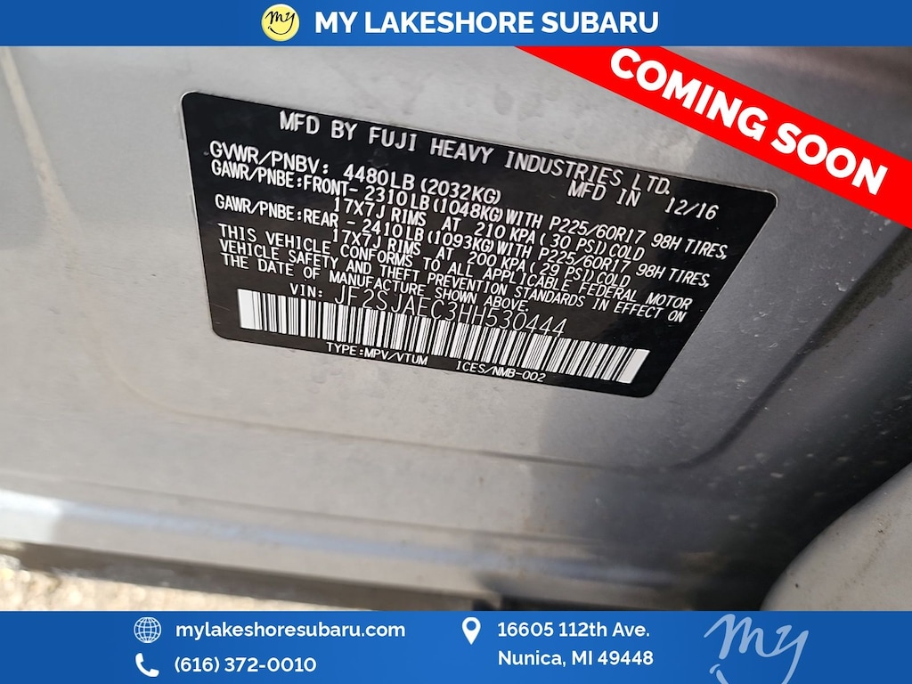 My Lakeshore Subaru is proud to service customer's saving you time & money on any Pre-owned vehicle! See dealer for complete details, dealer is not responsible for pricing errors, all prices, plus tax, title, plate, and doc fees. Serving Nunica and all of our surrounding cities like Norton Shores, Grandville, Greenville, Grand Rapids, Lansing, Kalamazoo, Walker, Comstock Park, Grand Haven, Holland, Wyoming, North Muskegon, Fruitport, Hudsonville, Spring Lake, Wolf Lake, Rockford, Zeeland, Kent City, Sparta, Coopersville, Allendale, Whitehall, and anywhere in the great state of Michigan. Buy from My Lakeshore Subaru in Nunica, MI and you will receive a best-in-class experience. Some of our used vehicles may be subject to unrepaired safety recalls. Check for a vehicle's unrepaired recalls by VIN at http://vinrcl.safercar.gov/vin/.