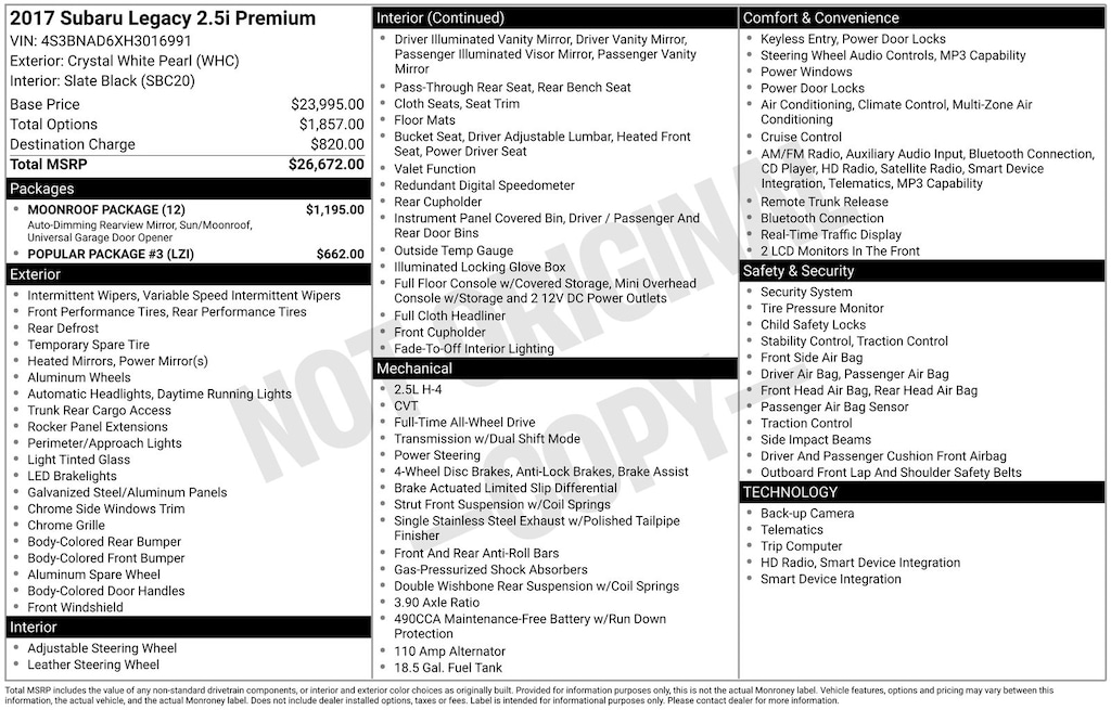 This is my 2nd Subaru Legacy and both have proven to be great cars. A few minor electronics issues that Subaru fixed. Over a great car for the snow and great safety ratings.