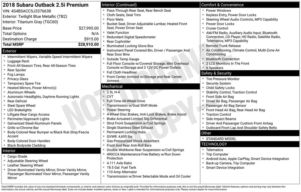 2018 Subaru Outback 2.5i Premium with