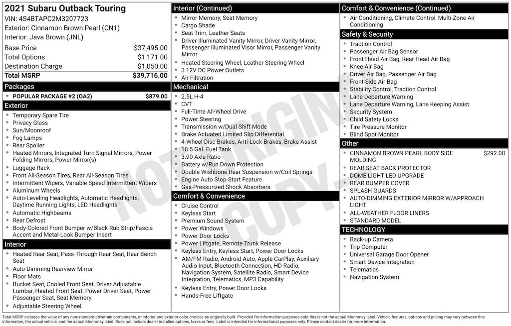 This is my second Outback Touring. I thought that the new technology and new body platform would be great, but I'm not so sure. My previous Outback had absolutely no rattles or squeaks, but this one does--in several places around the dash and the passenger side door, especially. Of course, the dealer couldn't hear any noises. There's also an occasional hesitation when driving. It's almost like the torque converter is disengaging momentarily. The dealer told me that the transmission is still "learning" my driving habits. There was nothing like that in the 2019 Outback. The new screen size is nice, but as I've read, and agree, there are too many menus to go through to get to what one wants. The heated seat controls are just one example. Invariably I will get a warning to pay attention when I am trying to find something on the screen. So far gas mileage is great. On a smooth flat road the ride is very comfortable and on the freeway I like the lane centering feature that my other one didn't have. - 5.0