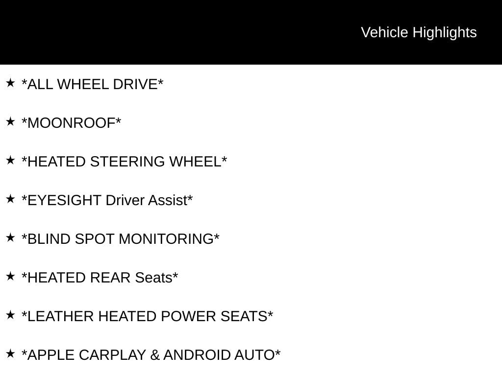 My Lakeshore Subaru is your #1 choice in Michigan to get the BEST PRICE on used vehicles and BEST value for your trade. The My Lakeshore Subaru team is ready to provide you with a world-class experience, ensuring that you find the perfect vehicle that fits all your needs. Every vehicle has been through a full safety inspection completed by certified technicians and fully detailed. We sell many makes and models, Certified Pre-owned Subaruâs and Pre-owned Vehicles with years from 2025-2024-2023-2022-2021-2020-2019-2018-2017-2016-2015-2014-2013-2012-2011-2010-2009-2008-2007 and all makes Audi, BMW, Chevrolet, Toyota, Volkswagen, Kia, Hyundai, Mazda, Mercedes, Dodge, Chrysler, Jeep, Ram, Lincoln, Honda, Subaru, and many models like Crosstrek, Outback, Forester, Accent, Legacy, WRX, BRZ, Solterra, and more. Take advantage of our VIP experience by calling 231-867-6957 to schedule a test drive. Read our customer reviews and view our entire selection of preowned vehicles at www.mylakeshoresubaru.com, or stop by today, located at 16605 112th Ave, Nunica, MI 49448. Recent Arrival! 111/93 City/Highway MPG